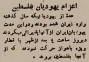 به گزارش اطلاعات آنلاین، در پاییز ۱۳۲۳ نیروهای انگلیسی انتقال یهودیان اروپایی مقیم تهران به سمت فلسطین را آغاز کردند. این گروه از یهودیان در مدت حضور در ایران تحت پوشش کلیمیان ایران بودند. ۳ سال بعد، ۷ آذر ۱۳۲۶ در مجمع عمومی سازمان ملل تقسیم فلسطین تحت اداره بریتانیا، به ۲ کشور اسرائیل و عرب و اداره شهر اورشلیم به صورت بینالمللی تصویب شد. ۲۴ اردیبهشت ۱۳۲۷ یک روز قبل از پایان قیمومیت بریتانیا، دیوید بن گوریون، رئیس آژانس یهود، تأسیس یک کشور یهودی در سرزمین های اشغالی، با نام دولت اسرائیل را اعلام کرد. خبر تاریخی روزنامه اطلاعات ۱۸ آبان ۱۳۲۳ را بخوانید.